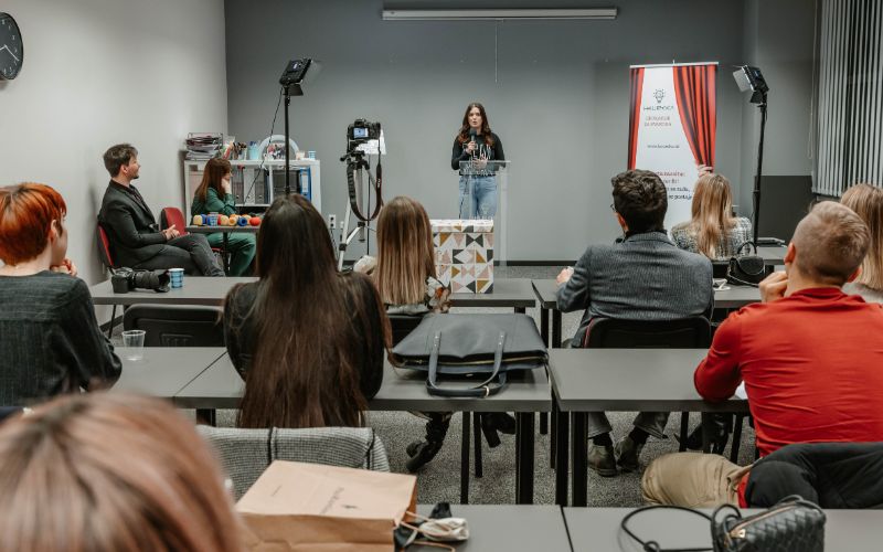 Jedna od naših novosti kojoj smo se dugo opirali bila je prilagodba Škole govorništva uživo za izvođenje online putem. No, kako se javni nastup u posljednjih nekoliko godina prebacio iz nastupa uživo većinom na online platforme, uočili smo potrebu za novom vrstom naobrazbe. Uspjeli smo kreirati program koji u 4 mjeseca na interaktivan način uči ljude kako zablistati na pozornici – bilo na onoj pravoj ili pak virtualnoj.