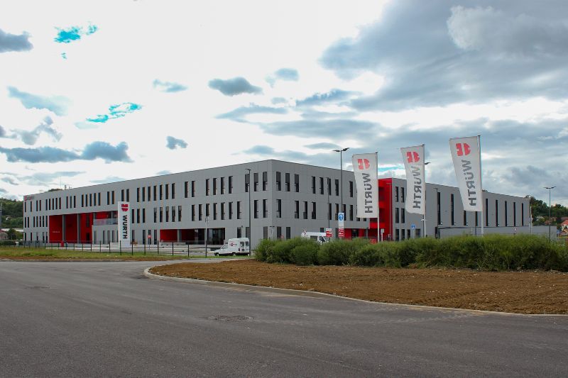 U novoj središnjici tvrtke Würth–Hrvatska d.o.o., tržišnog lidera iz područja montažnog pribora, spojne tehnike, alata i zaštitne opreme, rade 144 zaposlenika. Skladište koje se proteže na 6.300 m² podijeljeno je na zonu s policama s 8.400 lokacija te regalnu zonu s kapacitetom od 4.320 paletnih mjesta. Sustav pokretnih traka dugačak je 550 metara, s kapacitetom transporta od 1.000 kutija u 60 minuta. Tri ostakljena hodnika spajaju skladišni kompleks s upravnim dijelom zgrade. Na 4.700 m² nalaze se prostorije za edukacije, servis, veleprodajna trgovina, restoran s prostranom vanjskom terasom i konferencijske prostorije.