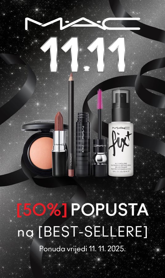 Na fabuspot.hr webshopu povodom Singles’ Daya čeka te 50% popusta na odabrane MAC proizvode, a u parfumerijama i na webshopu 22% popusta na ostatak asortimana. Popusti se ne zbrajaju s drugim popustima i ne vrijede na već sniženi asortiman, a traju samo 11.11.2025. pa ako već dugo promatraš neki beauty favorit, ovo je tvoj trenutak.
